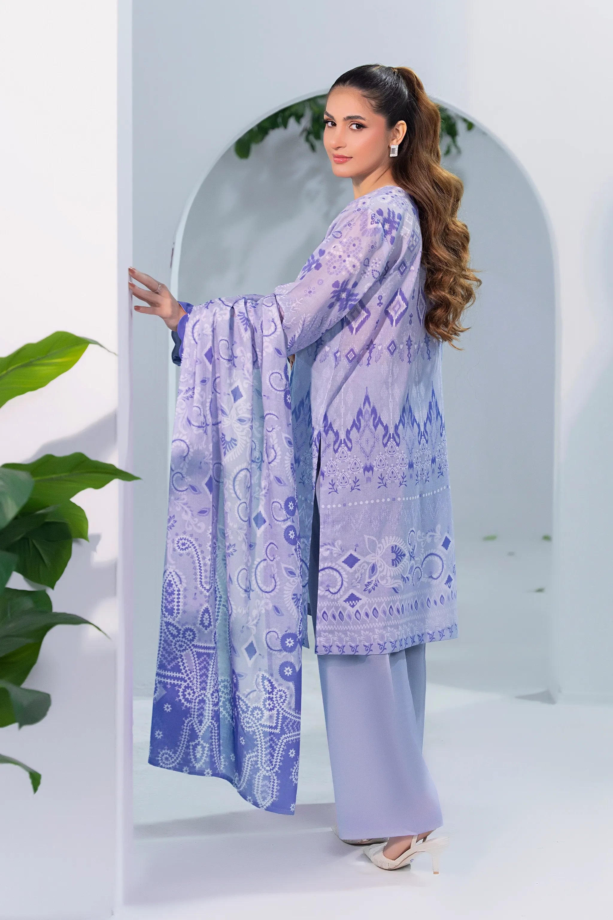 3 Piece Unstitched Light Purple Premium Printed Lawn
