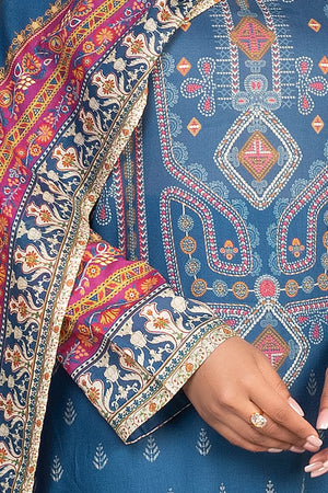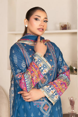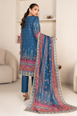 3 Piece Unstitched Sea Blue Premium Printed Lawn