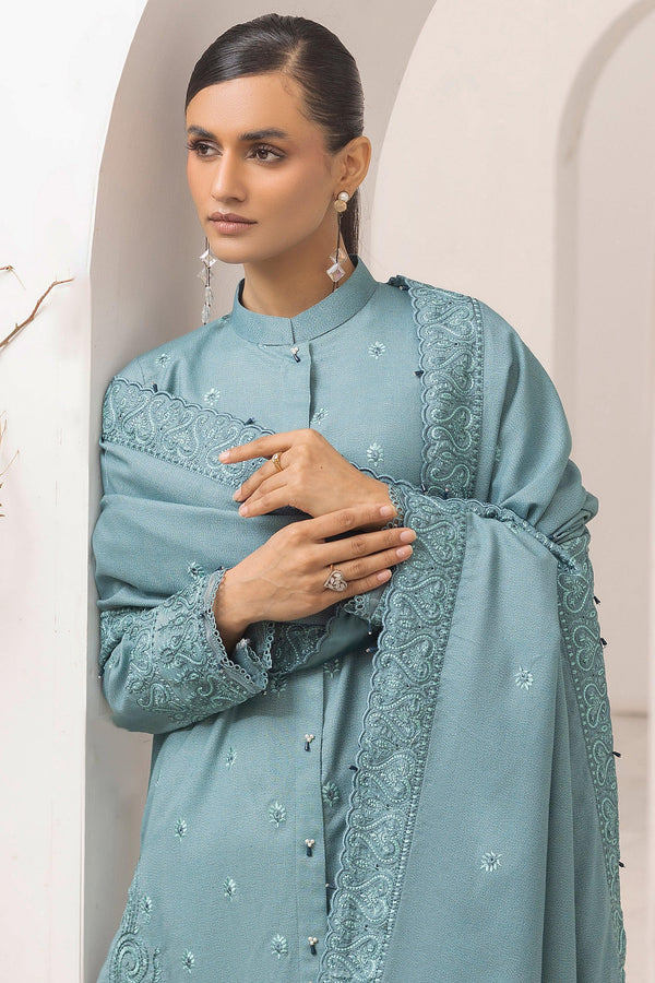 3 Piece Unstitched Ice Blue Premium Khaddar