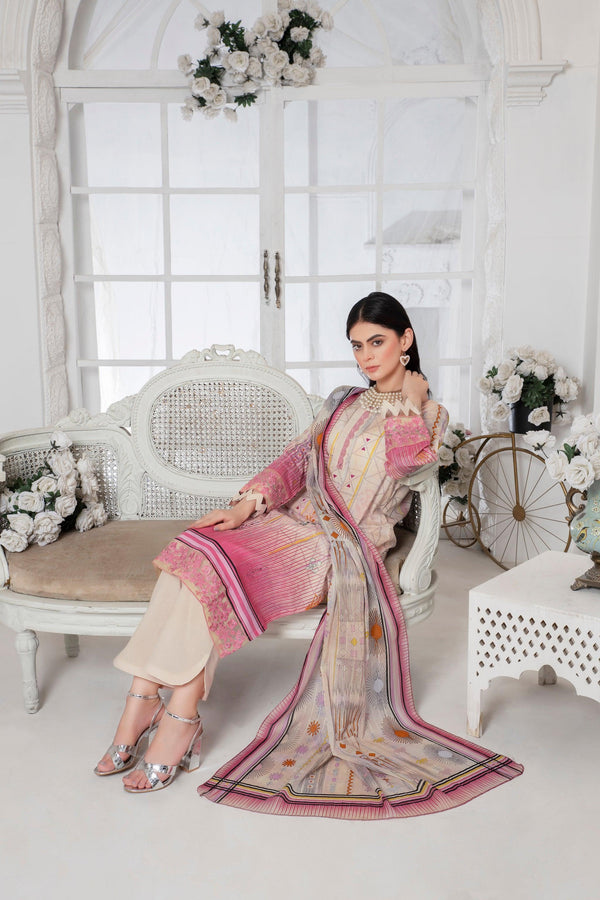 3 Piece Shocking Pink Unstitched Printed Khaddar