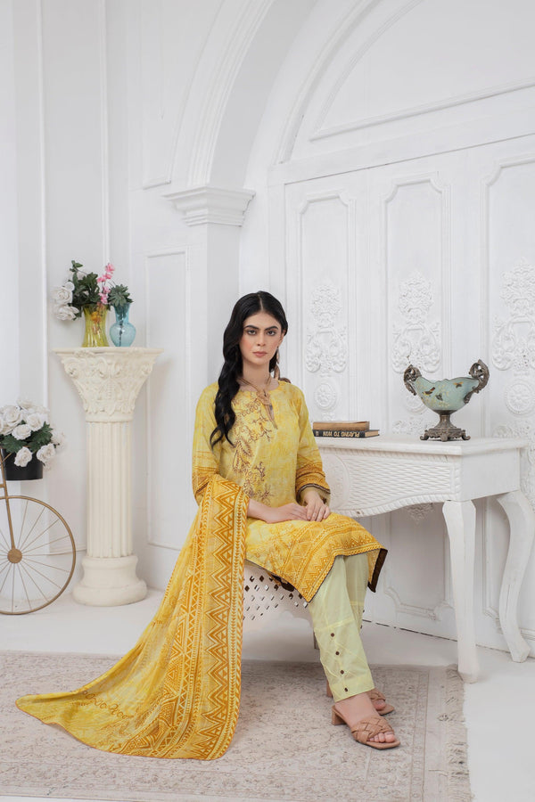 3 Piece Unstitched Lime Green Embroidered Lawn