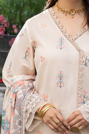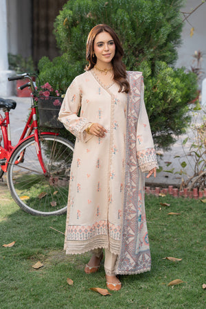 3 Piece Unstitched Almond Premium Emb Lawn