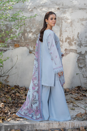 3 Piece Unstitched Carolina Blue Premium Emb Lawn