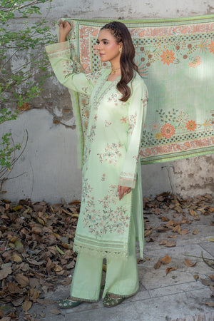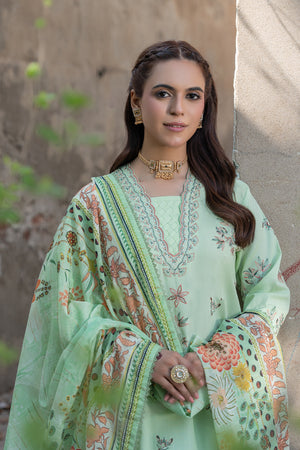 3 Piece Unstitched Laurel Green Premium Emb Lawn
