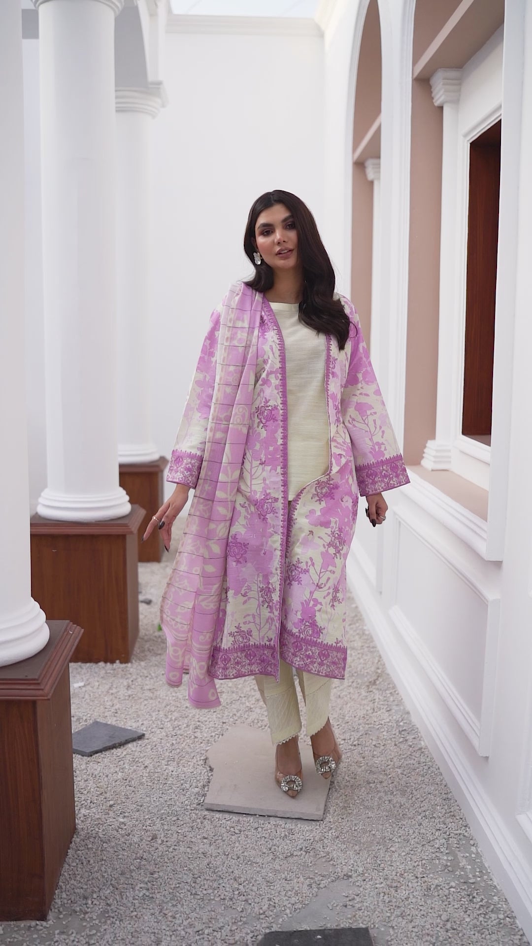 3 Piece Unstitched Lavender Embroidered Khaddar