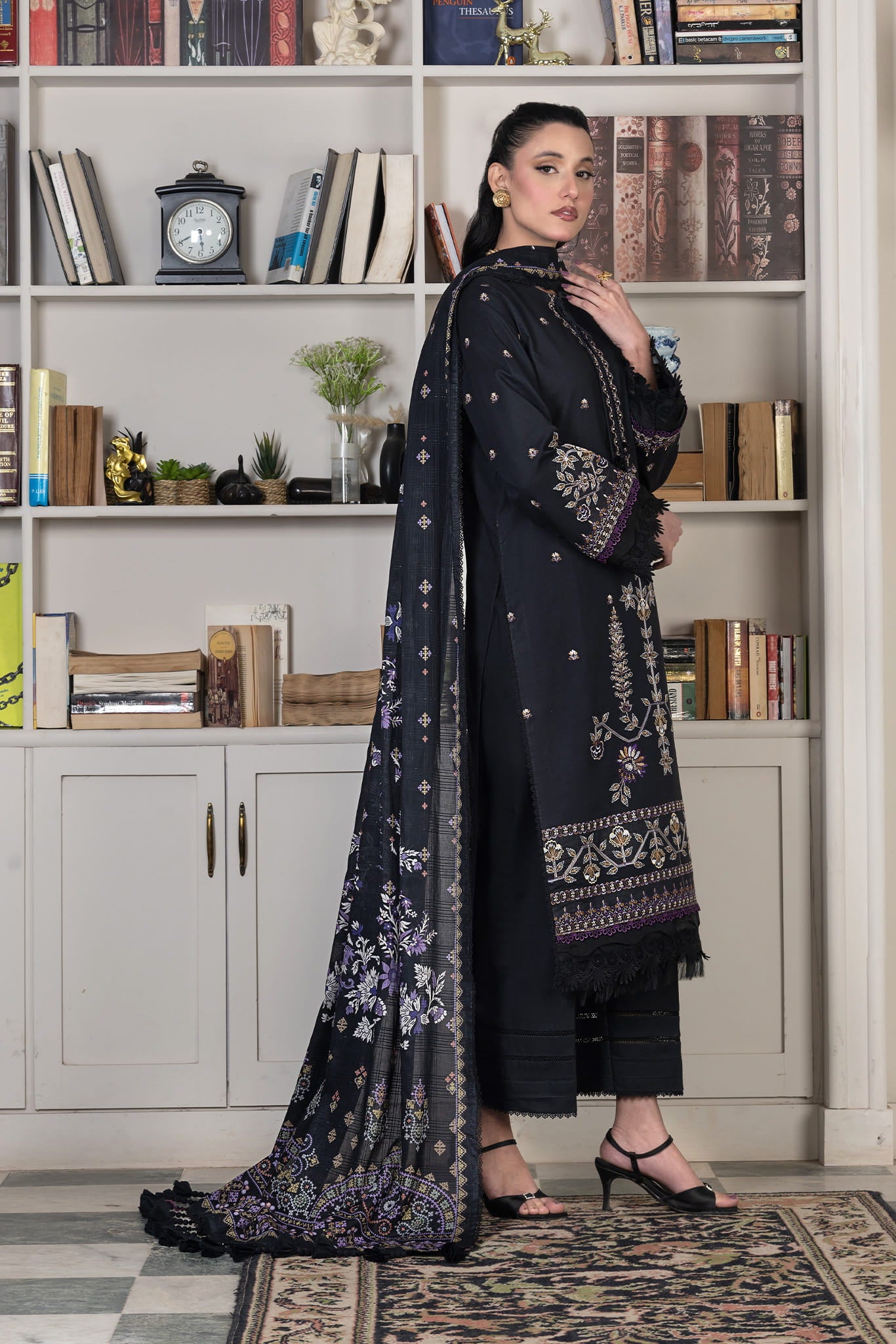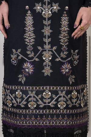 3 Piece Unstitched Black Luxury Embroidered Lawn
