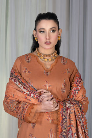 3 Piece Unstitched Pale Copper Luxury Embroidered Lawn