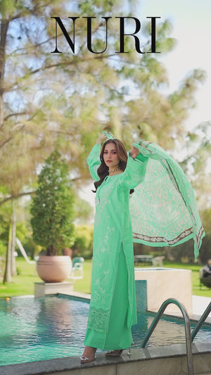 | Details | Self-Textured EMB Shirt (LAWN) 3 MTR Applique On Sleeves EMB Patch 30-Inch |