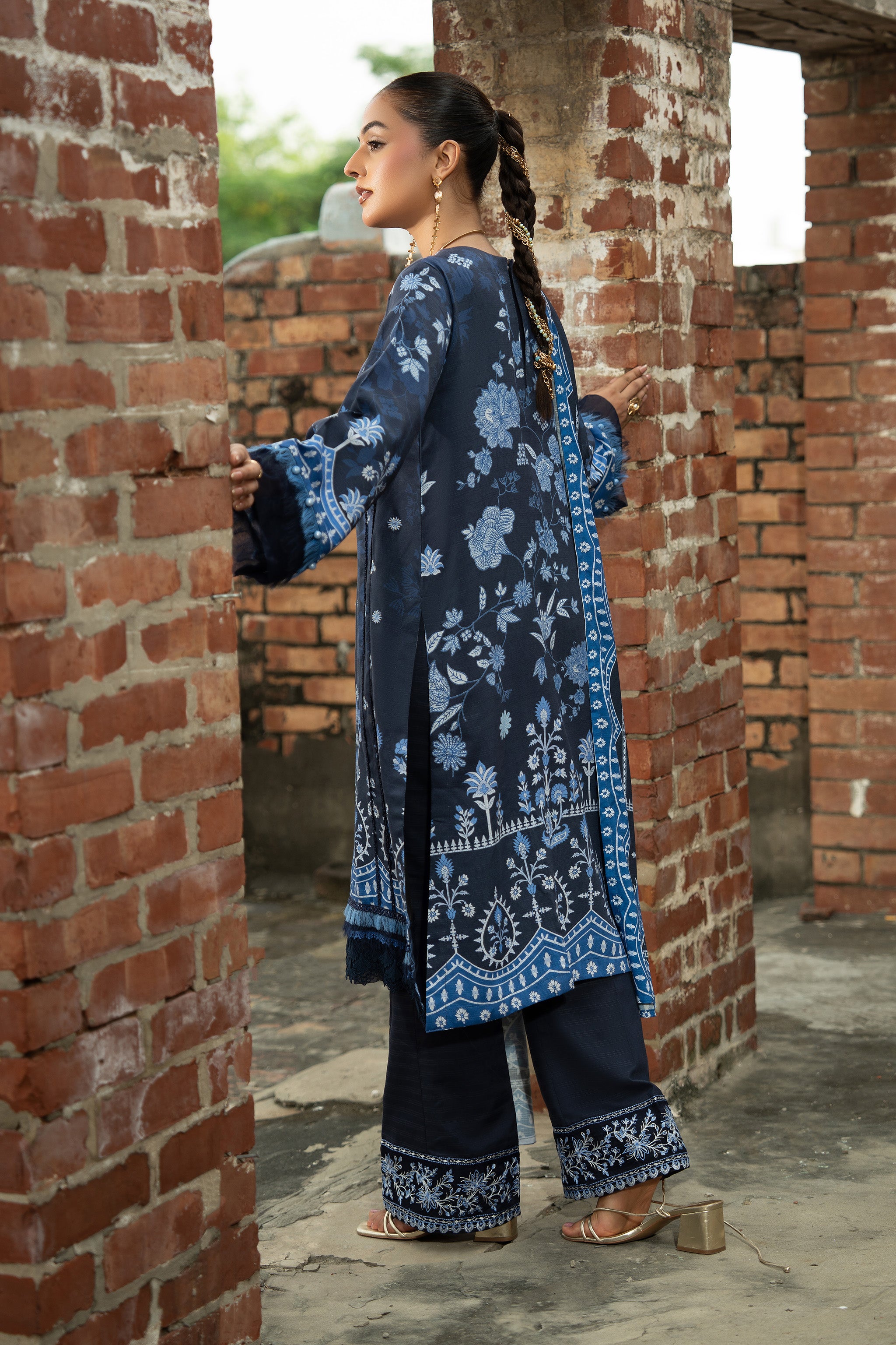 3 Piece Unstitched Navy Blue Embroidered Linen