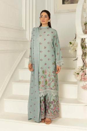 3 Piece Unstitched Cambridge Blue Premium Emb Jacquard Lawn