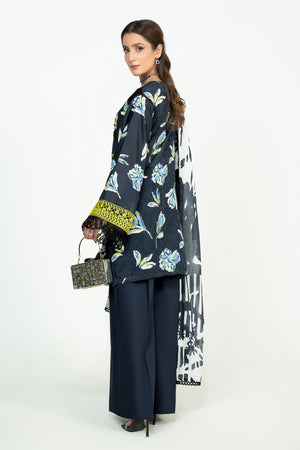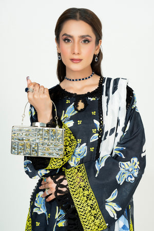 3 Piece Unstitched Black Embroidered Lawn