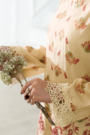 Inspired by warm neutral hues, this desert sand premium embroidered jacquard lawn suit offers effortless elegance. The embroidered print shirt in self jacquard lawn is paired with a dyed embroidered dupatta and digital cotton trouser, making it ideal for festive summer wear