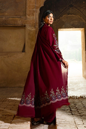 3 Piece Unstitched Dye Warm Naps Vine Red Suit
