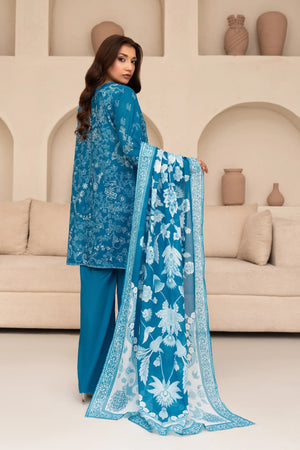 3 Piece Unstitched French Blue Premium Printed Lawn