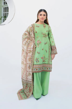 3 Piece Unstitched Light Green Premium Printed Lawn