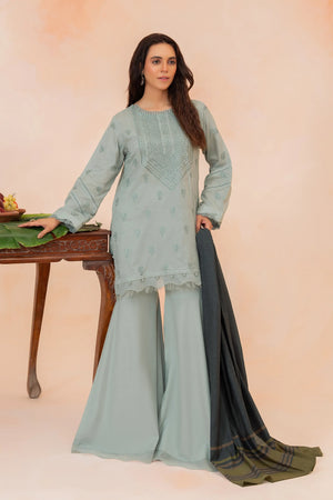 3 Piece Unstitched Ash Grey Premium Emb Jacquard Lawn